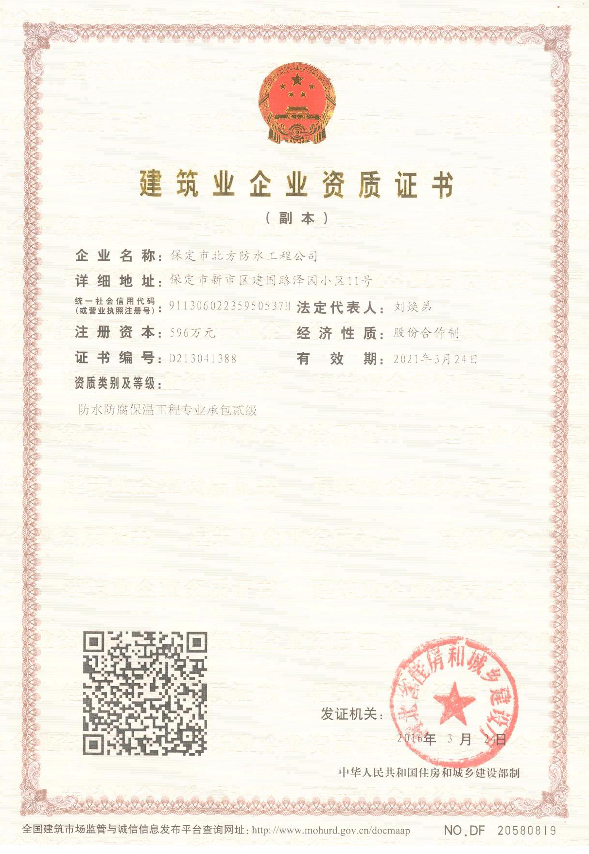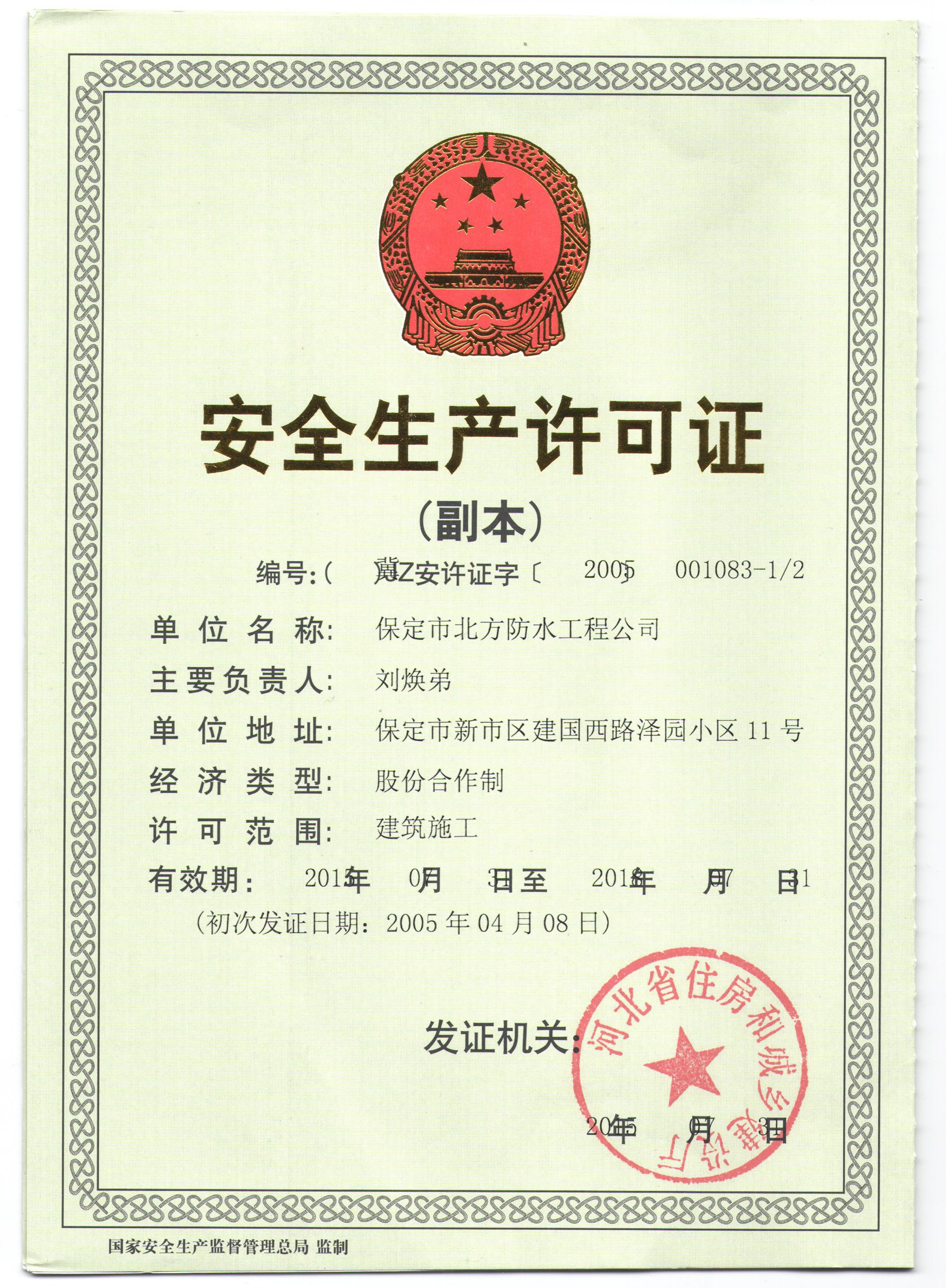 • 河北省建筑防水施工企業十強企業