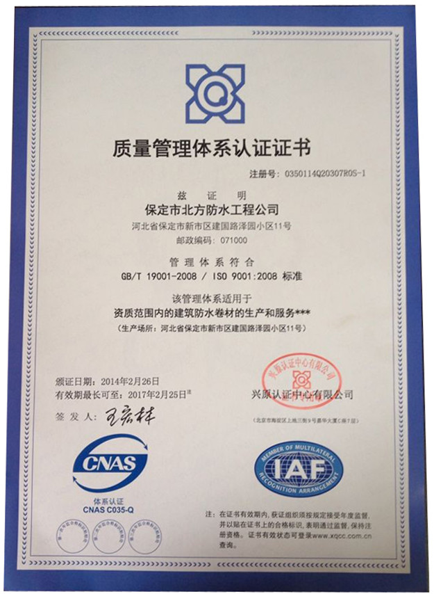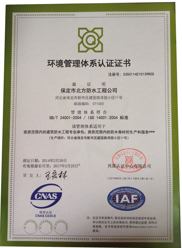 環渤海地區防水行業誠信企業