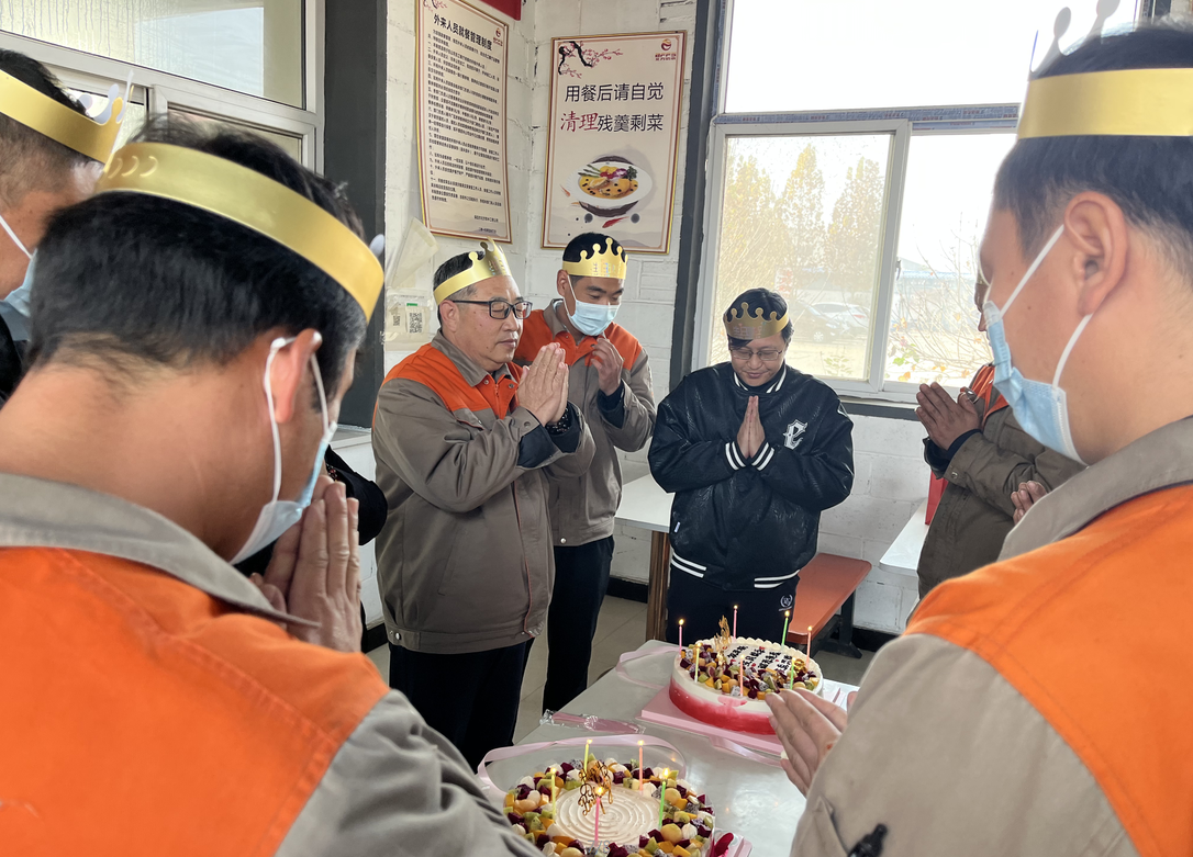 公司食堂準(zhǔn)備了豐盛可口的飯菜,公司準(zhǔn)備了生日蛋糕,董事長發(fā)表講話,并為過生日的同志送上生日祝福,公司員工聚在一起唱生日歌,分享生日蛋糕。大家都覺得十分幸福,因為我們是相親相愛一家人。